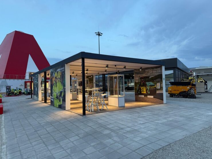 Auf der Bauma 2025 präsentierte sich die Ammann Group mit einem innovativen und aufmerksamkeitsstarken Messestand, realisiert mit dem modularen Aluvision Flexbox-System.