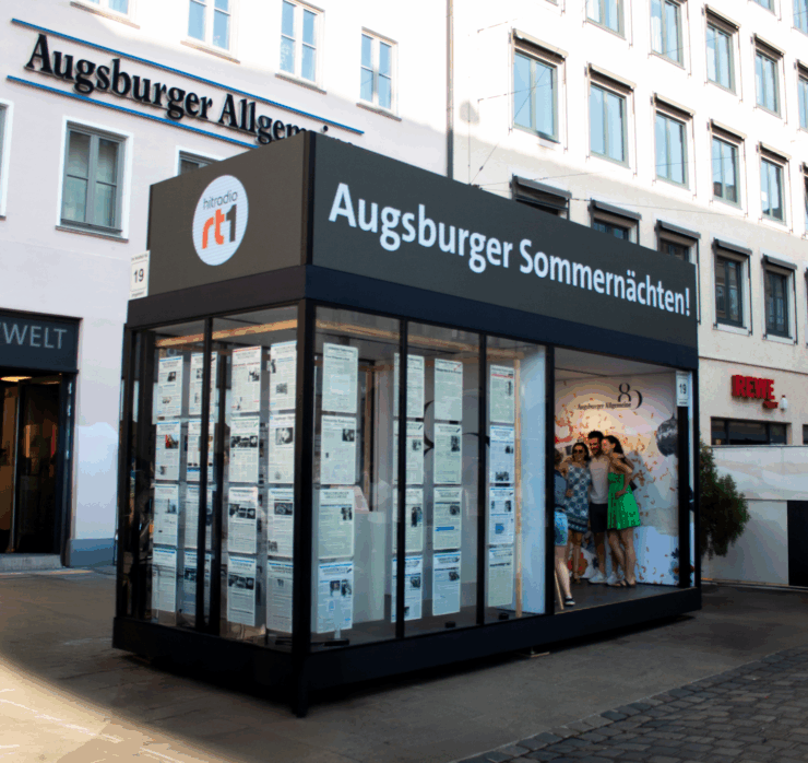Für die Augsburger Allgemeine Zeitung hat jungbauten zur Veranstaltungsreihe Augsburger Sommernächte 2025 eine individuell gestaltete Aluvision Flexbox realisiert.